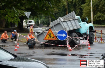 Неприємний інцидент трапився у Луцьку з автомобілем комунальників, які здійснювали заміну газових мереж