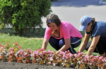 1400 нових кущів квітів висадили під стінами Луцької міської ради. Кажуть: зрозуміли, що дві існуючі клумби не гармонують між собою і потрібна третя – для зв’язки