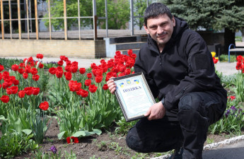 За роботу у прифронтовій Мар’їнці бійці 1-го батальйону 14-ї Володимир-Волинської окремої механізованої бригади нагородили подякою Андрія Цаплієнка. Військовий кореспондент, журналіст та ведучий, який звик працювати під кулями