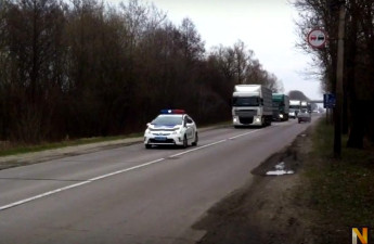 Як поліція супроводжує російські фури в Ковелі. ВІДЕО