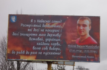 Білборди із портретами волинських героїв "Небесної сотні" з'явилися на вулицях Луцька. Ця акція присвячена другій річниці розстрілів на Майдані. Про це розповів організатор акції Богдан Усік