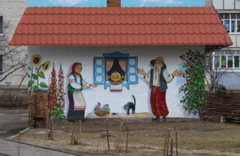 На вулиці Федорова, 1 будинки та гаражі розмальовані казковими героями