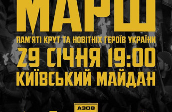 Марш пам'яті Крут та новітніх героїв України відбудеться у Луцьку 29 січня. Стартує хід о 19:00 з Київського майдану