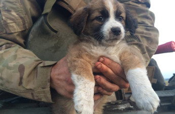 Бійці 14 бригади піклуються про осиротілих цуценят, маму яких вбив снайпер в зоні АТО. Трьох малюків військові віддали у нові родини на мирній території.