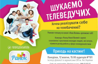 Ведучих ранкового шоу шукає у Луцьку команда «Ранку Нової Волині», – йдеться в однойменній спільноті на Фейсбуці.