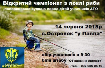 14 червня для дітей учасників АТО організовується відкритий чемпіонат з ловлі риби поплавцевою вудкою серед дітей учасників АТО.