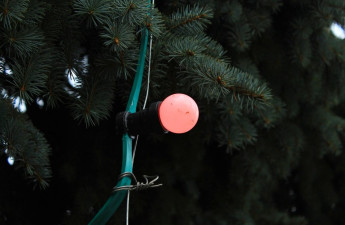Три живі ялинки, що прикрашають Театральний майдан міста, готують до Новорічних свят уже третій день