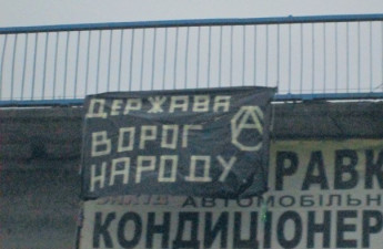 Невідомі анархісти у Луцьку вивісили на мості банер і намалювали тематичний малюнок на стіні біля колії. «Цим вони висловили свій протест проти держави, як гнобителя народу і захисника буржуїв»