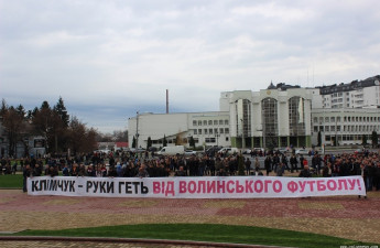 Понад тисячу осіб, а це – вболівальники, гравці луцької «Волині» - прийшли, аби закликати голову ОДА Бориса Клімчука «прибрати руки від футболу», «бути послідовним у своїх рішеннях» та не проводити вибори президента Федерації футболу Волині за закритими дверима