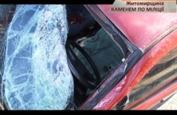 На трасі в автомобіль з міліціонерами жбурнули каменюкою. ВІДЕО