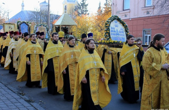 Хресною ходою від Свято-Покровського кафедрального храму до храму Всіх Святих землі Волинської пройшли священики Волинської єпархії УПЦ та православні віряни сьогодні, 22 жовтня, у Луцьку