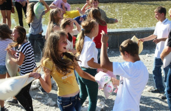 Декілька десятків молодих лучан гамселили одне одного подушками у центрі міста під час «Подушкової баталії»