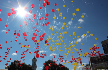 Представники влади та лучани запустили у небо 928 червоних та жовтих повітряних кульок у День міста