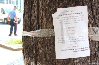 Кореспондент «ВН» став свідком акції, що проходить під Українським домом у Києві. Її учасники ‒ проти нещодавно прийнятого Верховною Радою «Закону про мови»