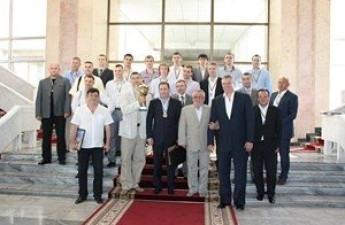Гравців, тренерський склад та адміністраторів БК «Університет-Волиньбаскет» привітали із завойованим першим місцем у розіграші чемпіонату України з баскетболу сезону 2011-2012 років та вручили їм золоті медалі та кубок