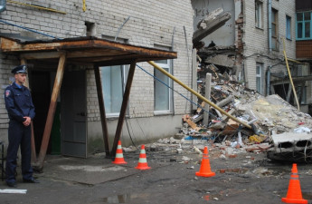 Працівники міліції забезпечують цілодобове чергування на місці обвалу 5-поверхового будинку на вулиці Рівненській в Луцьку