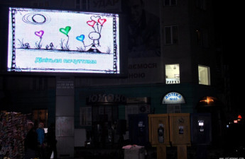Закохані пари Луцька зізнавалися у коханні через великий екран біля центрального універмагу