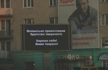 Соціальні відеоролики про руйнацію та деградацію особистості через алкоголь демонструються на центральному білборді Луцька