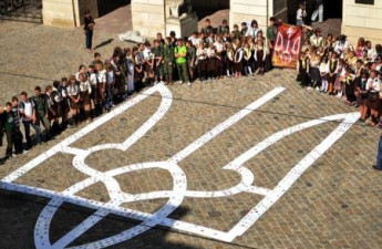 У Луцьку вперше виклали 12-метровий тризуб із доміно – фігура символізує історичне єднання українців