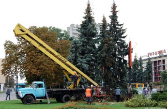 В центрі Луцька зрізали обгорілу ялинку. ФОТО