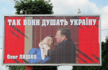 В регіонах України почали з’являтися бігборди із фотокадрами бійки народного депутата Олега Ляшка і віце-спікера Адама Мартинюка