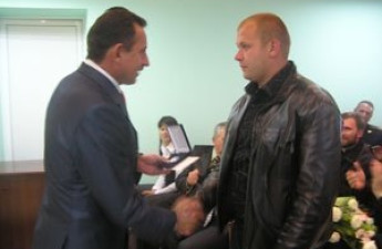 Начальник ГУМНС Володимир Грушовінчук вручив нагородні відзнаки МНС України «За відвагу в надзвичайній ситуації ІІ ступеня» Михайлу Соколу та Олегу Помогаєву