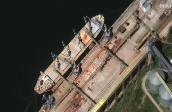 Нові знімки супутників компанії Maxar Technologies показують завантаження у російські судна зерна в окупованому Севастополі.