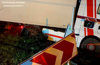 На Волині п'яний водій вантажівки заснув за кермом і зніс дорожній знак