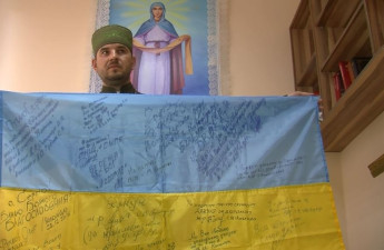 З підписами побратимів: волинський капелан зберігає прапор батальйону «Волинь»