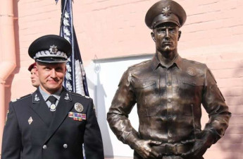 Глава поліції Київщини відкрив пам'ятник до 30-річчя незалежності України, що схожий на нього