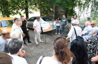 У дворі на проспекті Соборності, 5 вчора тривали жваві обговорення. Вся справа у тому, що мешканці тутешнього будинку розглядали проєкт ремонту та реконструкції їх двору.