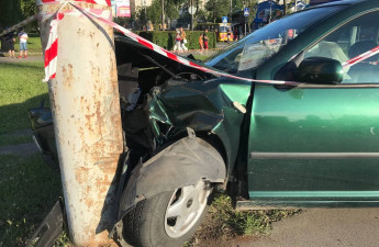 У Луцьку поблизу ТЦ «Гостинець» автівка влетіла в електроопору.