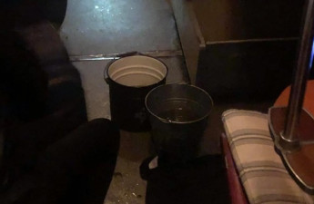 Пасажири потяга Київ-Миколаїв змушені були їхати у вагоні з відрами через діряву стелю. Відео