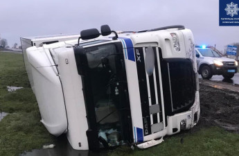У Колодяжному вантажівка з'їхала в кювет і перекинулась