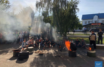 Волинські шахтарі палять шини під ДП «Волиньвугілля». Оновлено