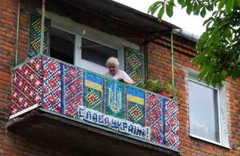 Патріотичний балкон із 5 тисяч пластикових кришечок. Фотофакт