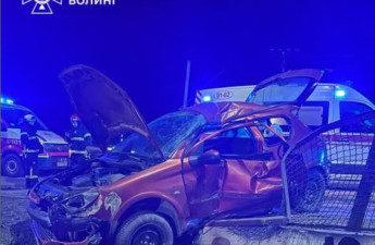 Біля Луцька автівка влетіла в паркан, водія визволяли рятувальники