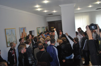 Микола Романюк попросив представників муніципальної міліції заспокоїти підприємців. Вони голосно вигукували «Дайте нам працювати!», «Ми вас вибирали!», чим заважали депутатам висловлювати свої «наболілі» запити