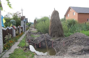 Очевидно, рятуючись від постійних підтоплень, майже посеред дороги мешканці Ківерець викопали став і симпатично, кажуть очевидці, його облаштували - вербa, комиш чи то рогіз, стіжки з сіном