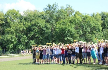 Велетенський тризуб утворили учасники флеш-мобу, який відбувся під час фестивалю «Бандерштат».