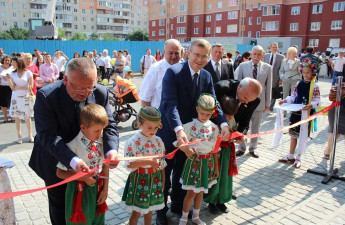 Віце-прем’єр-міністр України Олександр Вілкул та голова Волинської ОДА Борис Клімчук вручили сертифікати та ключі від нових помешкань власникам квартир у будинку, зведеному ПрАТ «Луцький домобудівельний комбінат» в межах реалізації Держпрограми «Доступне житло».