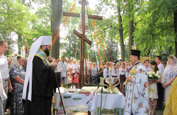 Митрополит Луцький і Волинський Михаїл освятив хрест у Володимирі, на місці, де новостворена парафія будуватиме храм Мучениць Віри, Надії, Любові та Софії