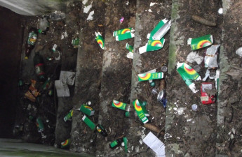 Сміттєзвалище порожніх пляшечок та упаковок від лікарського препарату «Кодарекс» виявили на східцях до підвального приміщення Будинку панахиди зі зворотньої сторони будівлі у Луцьку