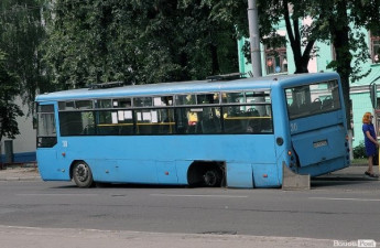ДТП за участю громадського транспорту трапилася у Луцьку. У маршрутного таксі з номером 15 на ходу відлетіло колес