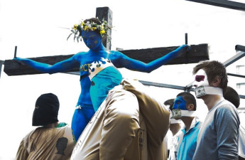 Під Конституційним судом розіп'яли основний закон. Таким чином активісти продемонстрували своє ставлення до того, що відбувається із документом