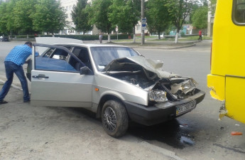 Автомобіль, орієнтовно марки ВАЗ, врізався у маршрутне таксі номер 17а о 11.25 на проспекті Відродження поблизу Луцької міської лікарні