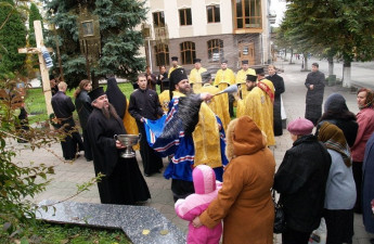 У Луцьку у сквері на вулиці Лесі Українки, де стоїть пам’ятник Степанові Бойку, освятили місце під будівництво каплиці Волинської ікони Божої Матері