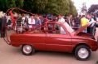 У незвичайний аеромобіль з величезним пропелером переобладнали старий «Запорожець» учні Хмельницького вищого професійного училища №1