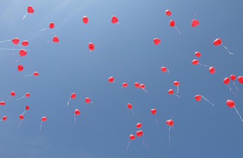 На центральному майдані Луцька у повітря запустили серце із півтори сотні кульок