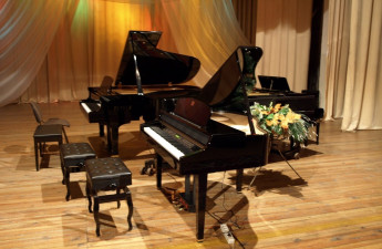 В обласному центрі Волині на сцені Народного дому «Просвіта» водночас звучали три роялі. Так виглядала презентація нового електророялю, який Луцьку подарувала міська влада